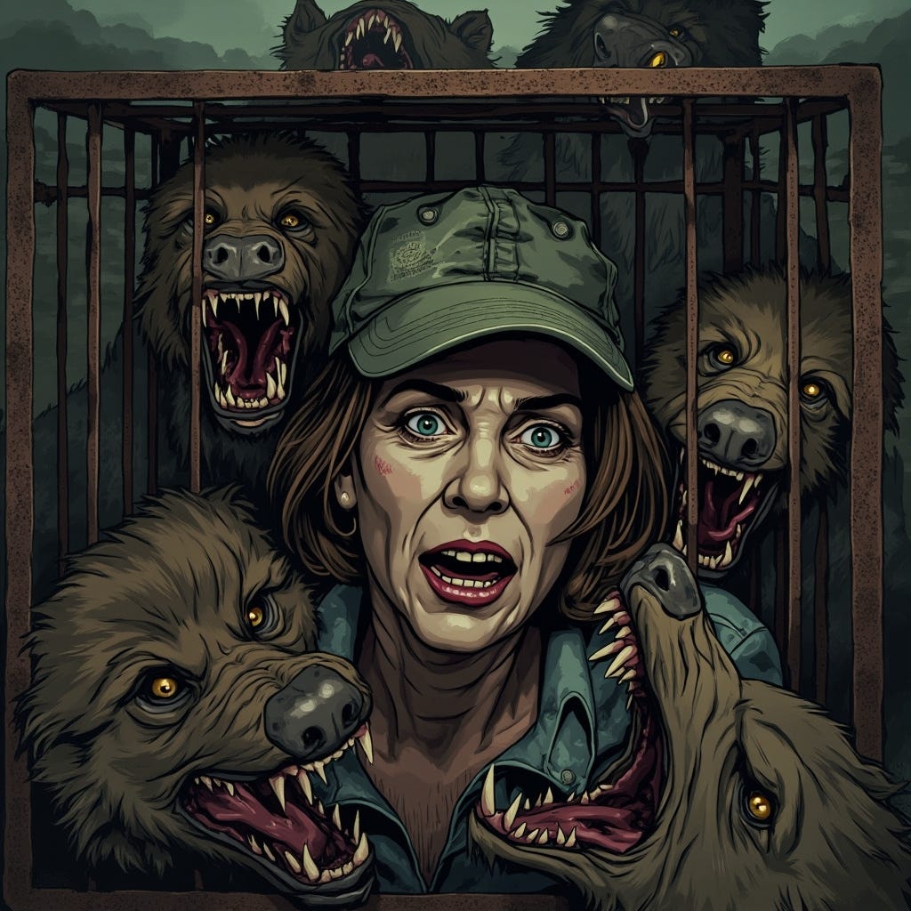 Of course, there will be VIP (very insidious predator) cages for Bondi, Miller, Hegseth, Noem, Rubio, Patel, et al. Every day the loudspeaker will have alternating Hispanic immigrant guards read to these imprisoned assholes the story of how in Nazi Germany innocent people were not only imprisoned, but also for most brutalized before facing death under the most gruesome of circumstances.