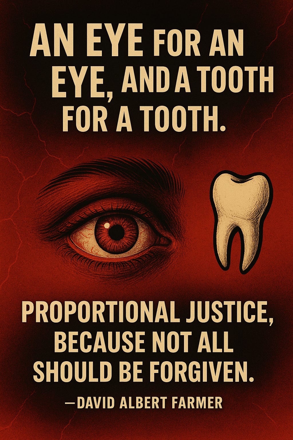 My seminary Christian Ethics professor, the late Dr Paul D Simmons, taught me 45 years ago that the ancient near Eastern principle of “An eye for an eye, a tooth for a tooth,” ultimately incorporated into Mosaic law and thus Hebrew scripture, was an antidote to limitless retribution. If you knock my tooth out by accident or on purpose I get to knock out one of your teeth as opposed to burning down your tent or killing your mother-in-law. Proportional or retributive justice.