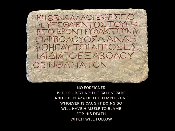 From Persecutor to PersecutedThe Anti-ICE Apostle and YouMay 10, 2025ShareChallenge coming soon, right here. In the mean time, ponder this warning message found in the Jews’s beloved and revered Jerusalem Temple in the time of Jesus and Paul. Thanks for reading David Albert Farmer Substack! Subscribe for free to receive new posts and support my work.Subscribe