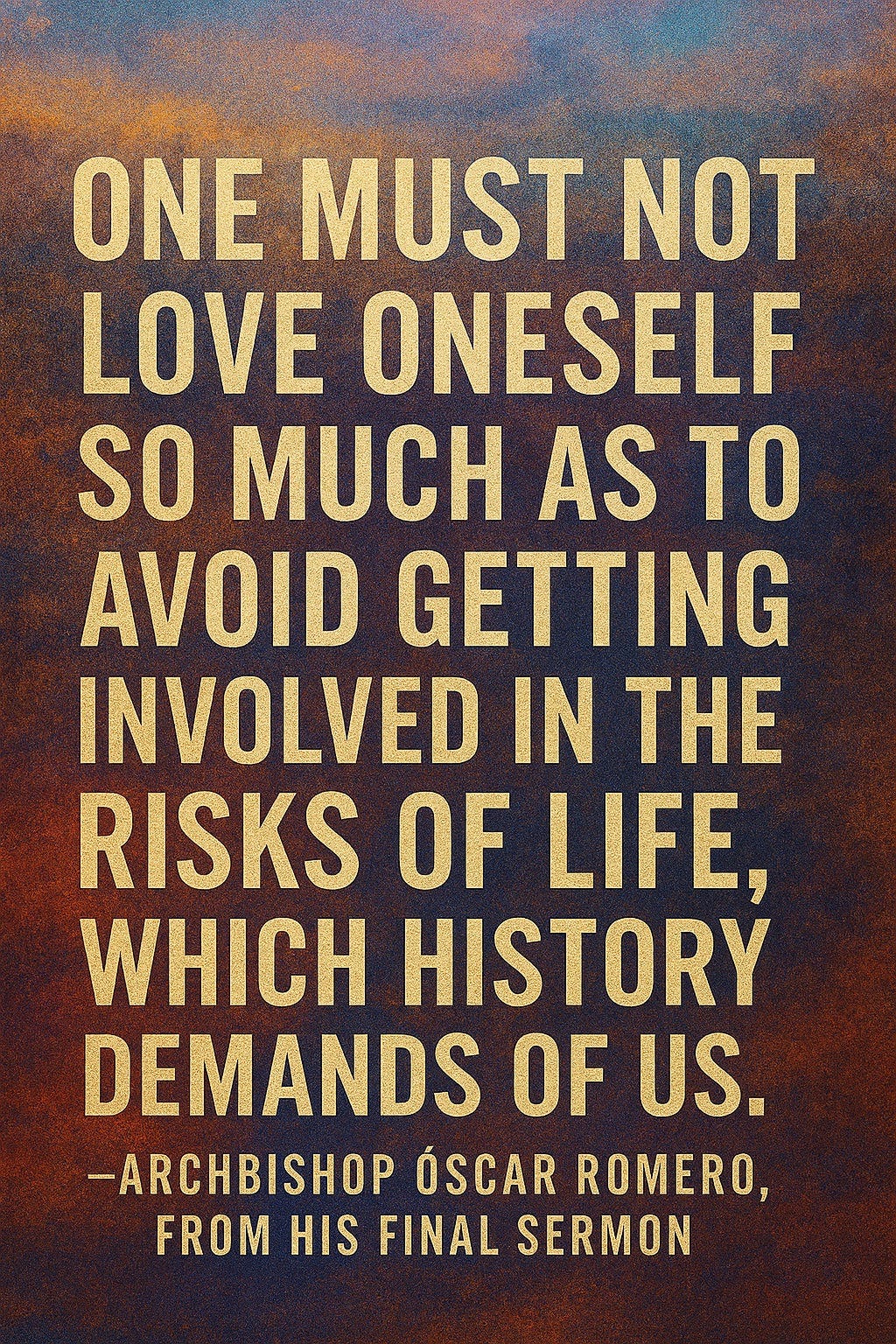 Necessary risks; deadly risks. An unsettling insight from the last sermon Archbishop Óscar Romero preached.See my fuller post on Archbishop Romero and Dr. Dietrich Bonhoeffer, as martyrs..Aug 05, 202521Share