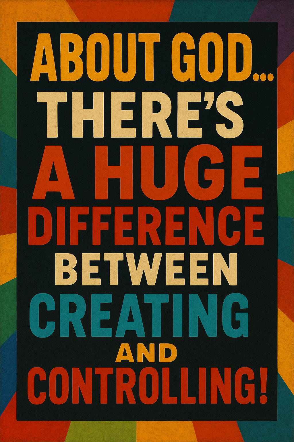 So as a matter of fact, there’s a huge difference between creating and controlling. Looks like the onus is on us, folks. God will lure us toward the highest moral high ground, but God will not cause it or require it.