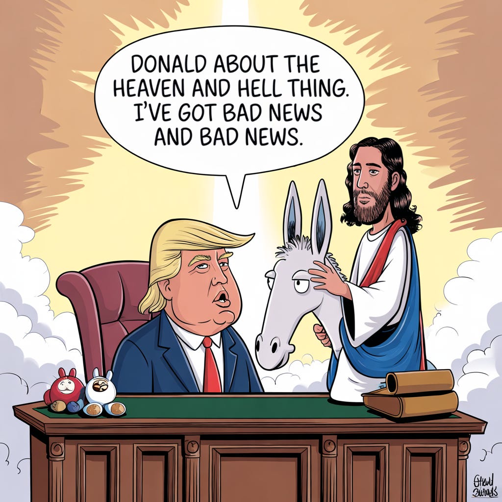 WWJB. Where Would Jesus Be if he walked on Planet Earth today? In the Oval, but never while the MAGAt ministers are there.Choosing hell is a preference.Aug 20, 20251Share